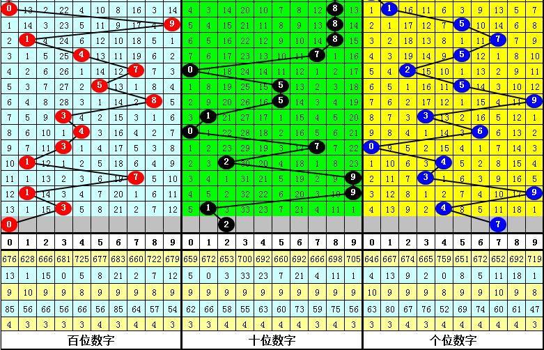百位分析:上期出现号码3为:质数、小号,在连续9期开奖中,百位分别为:质数、大号:5;合数、大号:8;质数、小号:3;合数、小号:4;质数、小号:3;质数、小号:1;质数、大号:7;质数、小号:1;质数、小号:3,其中小号频次较少,合数出号较少,百位本期注意合数、小号开出。