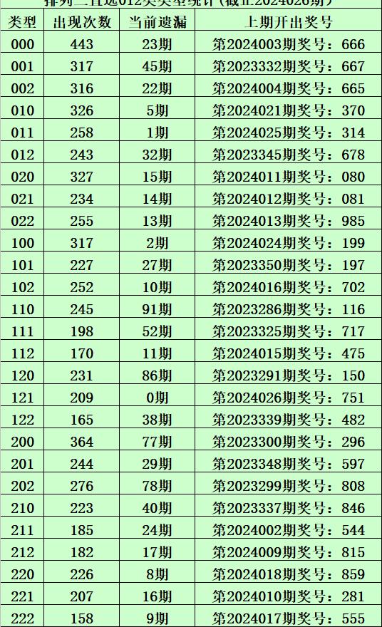 上期回顾:体彩排列三第2024026期开出奖号:751,其012路比为0:2:1,奖号012路类型为:121。