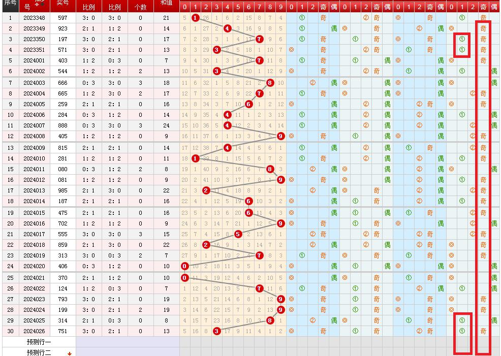 观察各位置奇偶开出趋势,本期选择奇数0-2个。