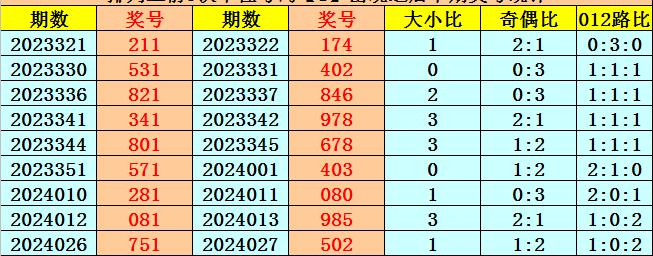 上期回顾:排列三2024030期奖号为951,号码类型:组六,奇偶比3:0,大小比2:1,012路比1:1:1。