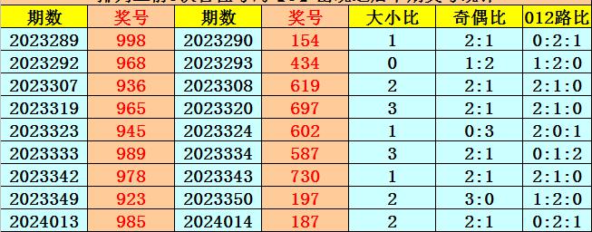 百位号码:百位上期奖号为2路、奇数、小号:9,历史上百位号码9共开出680期,前一次开出期数在第2024013期,上期奖号隔16期再次开出。