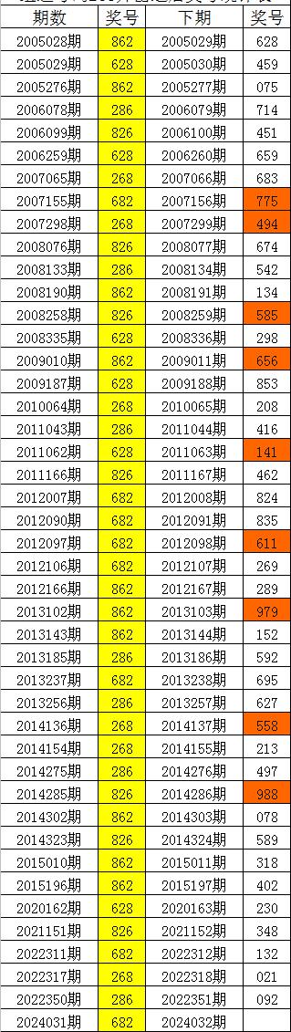 从上表统计可以看出,直选号码682开出之后,其下期奖号: