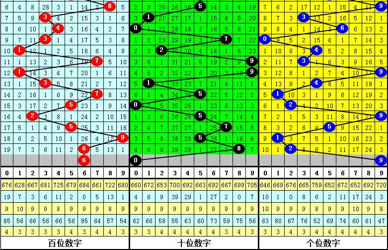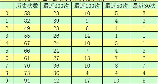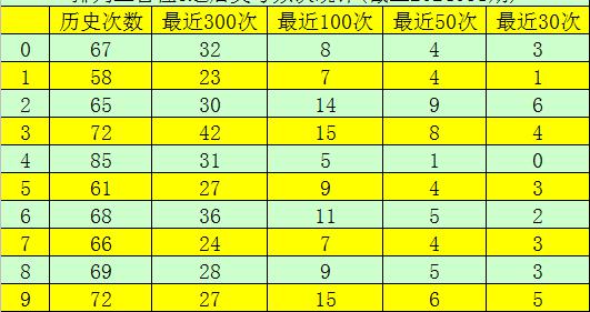 第一位杀号:上期第一位奖号为6,第一位奖号6历史上出现684次,前100次该位开出奖号6之后,下期号码0-9出现次数从高到底分别为:号码3、9→15次,2→14次,6→11次,5、8→9次,0→8次,1、7→7次,4→5次。