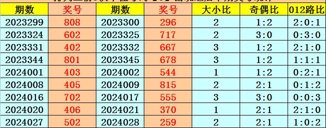 十位号码:十位上期开出奇数、大号、0路号码:0,历史上十位号码0共开出661期,上一次出现在第2024027期,上期奖号遗漏值为4期。