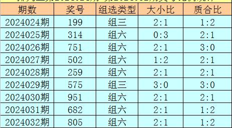 上期回顾:排列三第2024032奖号开出805,奖号质合比为1:2,大小比为2:1,跨度为8,类型为组六。