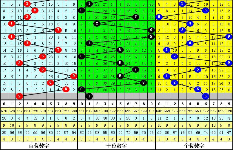 百位分析:上期出现号码8为:大号、合数,在连续9期开奖中,百位分别为:小号、质数:1;小号、质数:3;大号、质数:7;大号、质数:5;小号、质数:2;大号、质数:5;大号、合数:9;大号、合数:6;大号、合数:8,其中小号出现频繁,质数频繁开出,百位本期预计开出小号、质数。