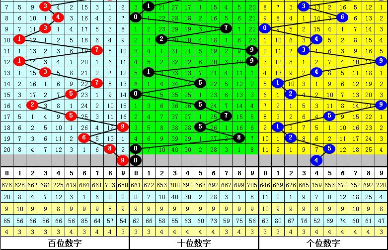 大中小分析:在组选0-9号码分布图中,前10期小号(0-2区段)出现9枚奖号,中号(3-6区段)出现11枚奖号,大号(7-9区段)出现10枚奖号,上期大中小区间分别出现1枚奖号,本期预计大中小区域各出1枚奖号。