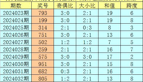上期回顾:排列三第2024032期奖号:805。类型:组六,奇偶形态:偶偶奇,大小形态:大小大,和值:13,跨度:8。