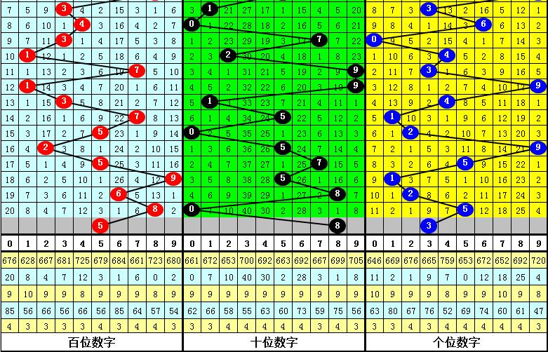 跨度判断:连续10期跨度开出012路比为4:1:5,012路跨度基本持平,跨度最近3期遗漏值分别为5期、4期和1期,本期预计跨度遗漏值走大,防温冷跨度解冻,参考跨度5。