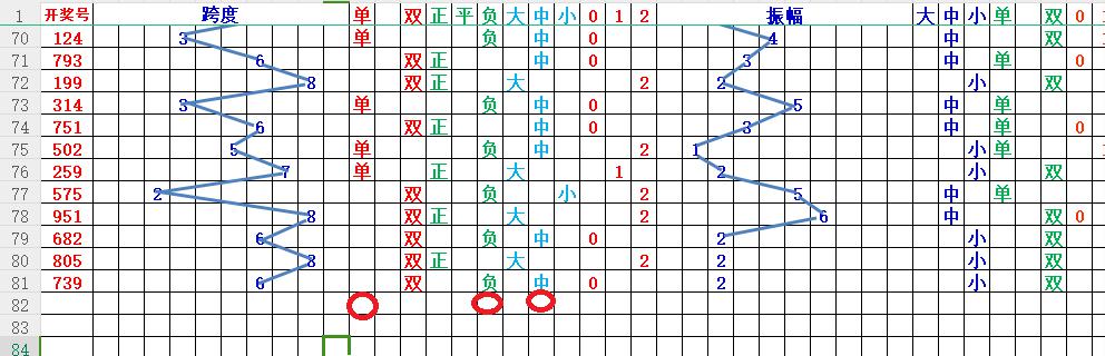 033期开奖号:739,均值: 6√和值:19√ 跨度: 6√胆码: 579√