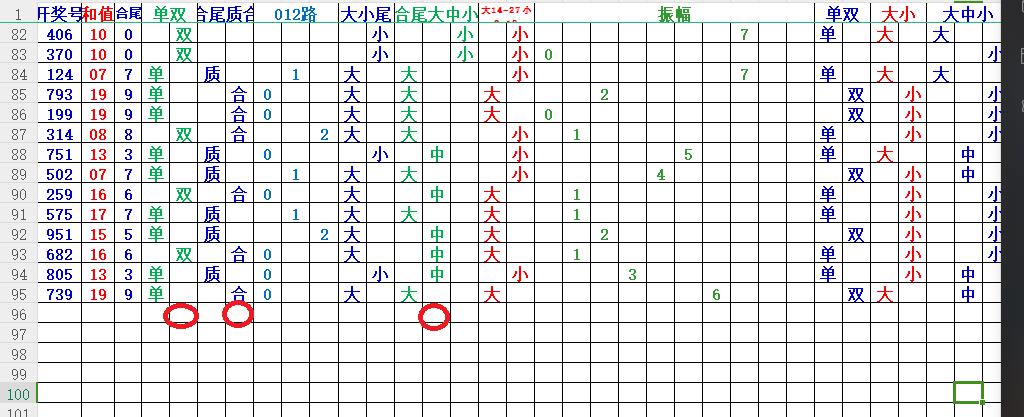 回顾033期:开奖号:739,均值:6,和值:19,跨度:6跨,大小比例 2:1,单双比例:3:0 012路:2:1:0