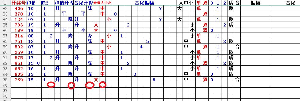 如上图3,根据和值升平降来看,和值降的概率很大,也就是小于19的和值,关注19以下的和值。