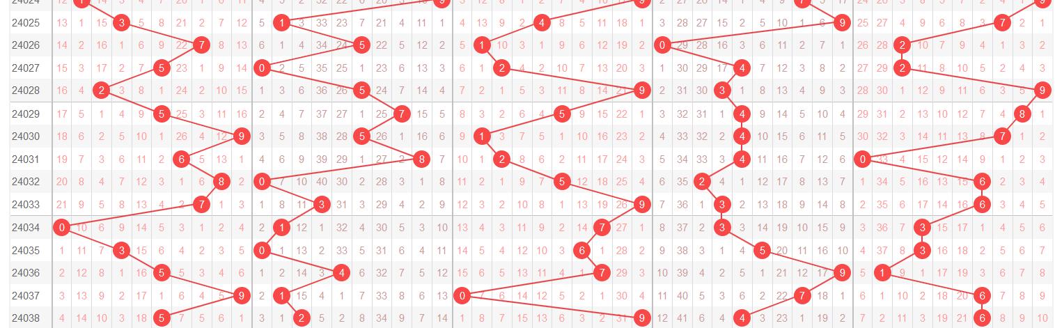 这个图片是2023310~2023341期(341在最底下,仔细看有一点圆弧)的图,这些规律我甚至都画不完,哪儿哪儿都是,那些上部没有划线的地方实际上也有,比如千位318期的9到319期的6和万位319期的9到320期的6