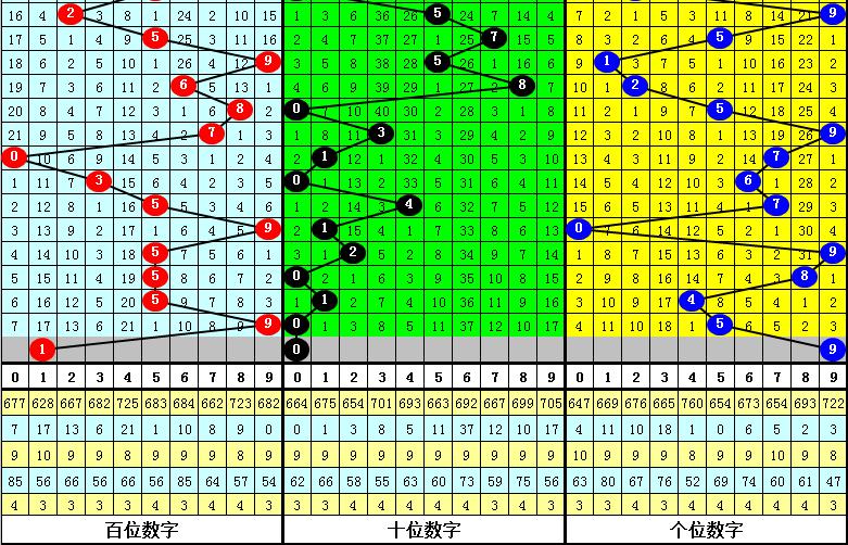 二、在最近22期开奖中,奖号:5、1、9、0,开出期数最多,本期注意这四码中落号,关注号码9;遗漏期数最多的三码奖号为:3、6、7,当期开奖一般不会全部出现冷码,本期可以排除号码7。