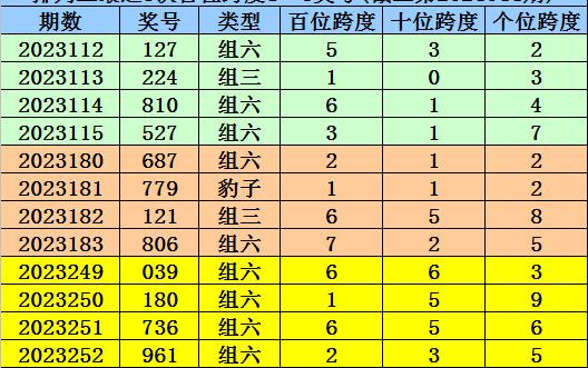 第2023249-第2023251期奖号:039、180、736,其下期奖号为:961,首位号码跨度为2;