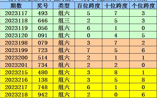 第2023215-第2023217期奖号:480、138、748,其下期奖号为:942,中位号码跨度为2;