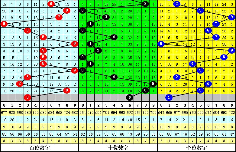 本期首位号码注意2路跨度,参考跨度0、2、5。