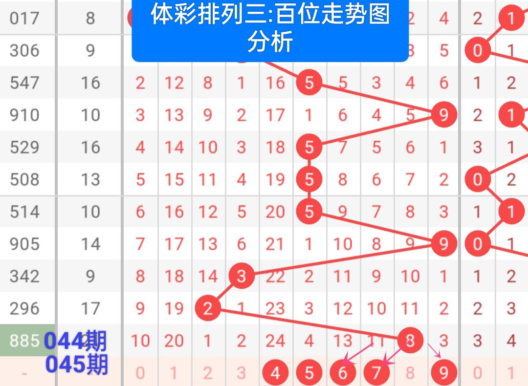 首先我们分析下:体彩排列三:2024045期百位走势图定位分析