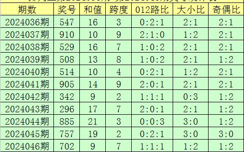 开奖回顾:排列三第2024046期奖号开出:702,组选类型:组六,大小比为1:2,奇偶比为1:2,和值为9,跨度为7。