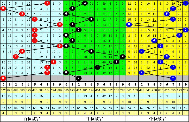 一、在以上统计中,表现最热的四个奖号为:5、0、2、7,一般来说这四码中包含当期开奖号码,本期看好号码7出现;走势最冷的三个奖号为:3、4、6,在实际开奖中当期奖号不会全部出现在这三码中,本期可以排除号码3。