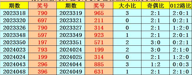 百位号码:百位上期奖号为0路、奇数、大号:4,历史上百位号码4共开出726期,前一次开出期数在第2024020期,上期奖号隔29期再次开出。
