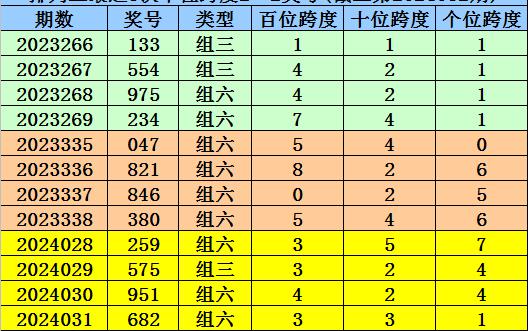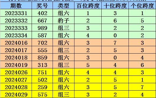 第2024026-第2024028期奖号:751、502、259,其下期奖号为:575,首位号码跨度为3;