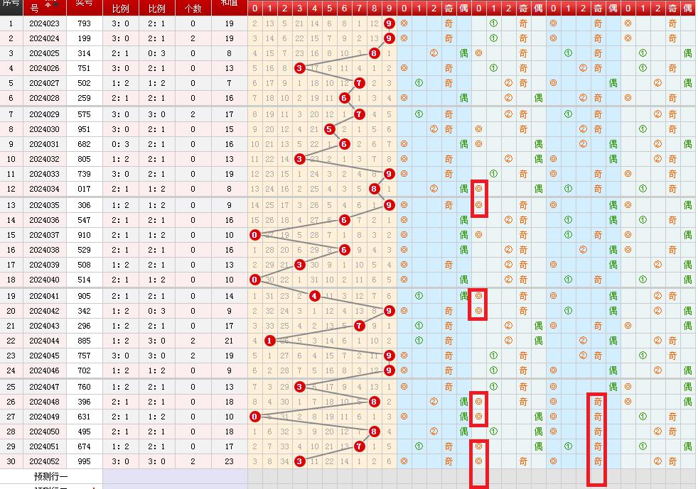 近30期和值奇共开出18期,和值偶共开出12期,和值奇优势。近五期分别开出2奇2奇2奇1奇3奇,奇偶数大致均衡。观察各位置奇偶分布情况,上期开出和值奇,本期和值奇偶难定。