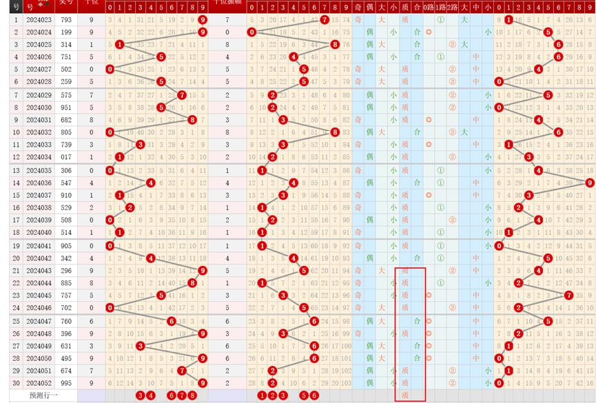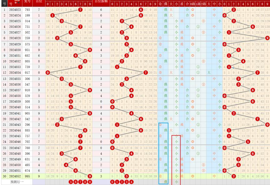 体彩排列3上一期,开奖号码995,形态为组三,奇偶比为3:0,012路数值表现为002,和值23,和尾3,跨度4。第053期定位分析如下: