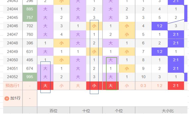 大小走势分析:个位:56789 十位:01234 百位:56789