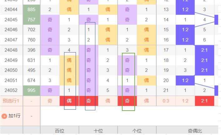奇偶走势分析:个位:13579 十位:13579 百位:02468