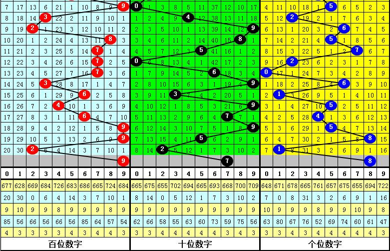 和值分析:最近5期和值分别开出:18、17、23、22、5,本期看好和值上升,重防和值24。