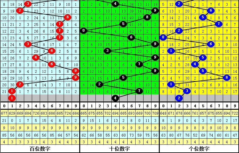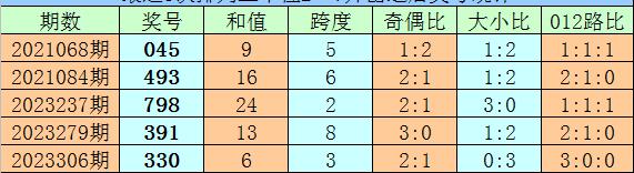 3、在以上0-9号码频次中,号码大小比为27:28,012路比为23:15:17,本期预计百位开出1路号码,参考号码1。