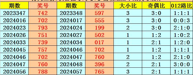 上期回顾:排列三2024057期奖号为765,号码类型:组六,奇偶比2:1,大小比3:0,012路比1:1:1。