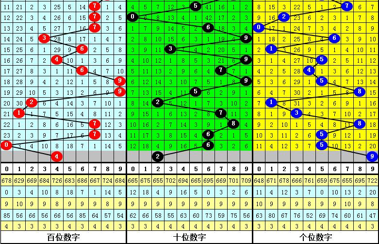 1.百位:最近9次大小总比例是6:3,奇偶总比例是5:4,012路总比例是3:3:3,本期预计百位开出号码2345,偶数4可以作为胆码。