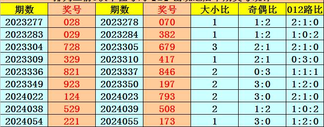 十位号码:十位上期开出奇数、大号、2路号码:2,历史上十位号码2共开出656期,上一次出现在第2024054期,上期奖号遗漏值为4期。