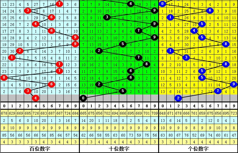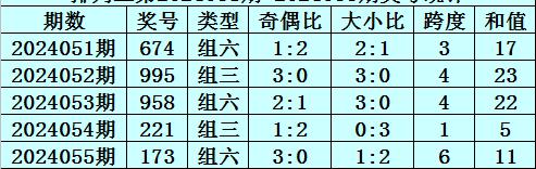 跨度分析:最近5期分别开出跨度:1、2、6、7、4,本期防跨度4重复开出。