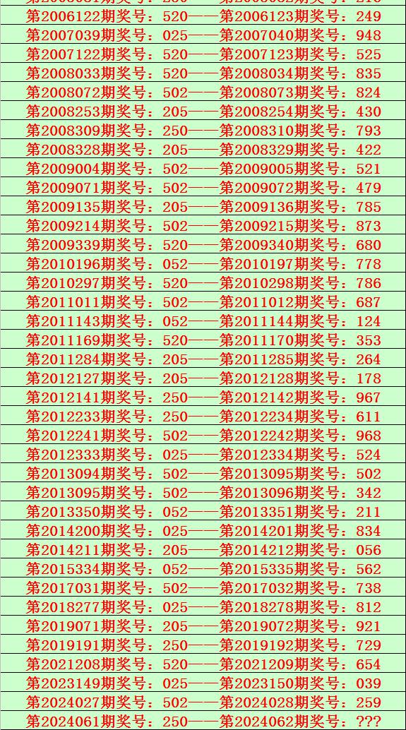 开奖回顾:体彩排列三第2024061期奖号为:250,类型:组六。