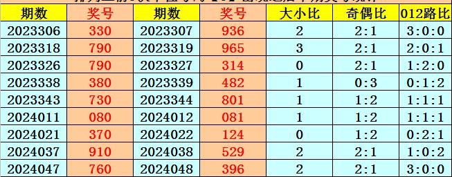 个位号码:上期奖号为小号、偶数、0路号码:0,历史上个位号码0共开出649期,前一次出现在第2024047期,上期遗漏13期再出。