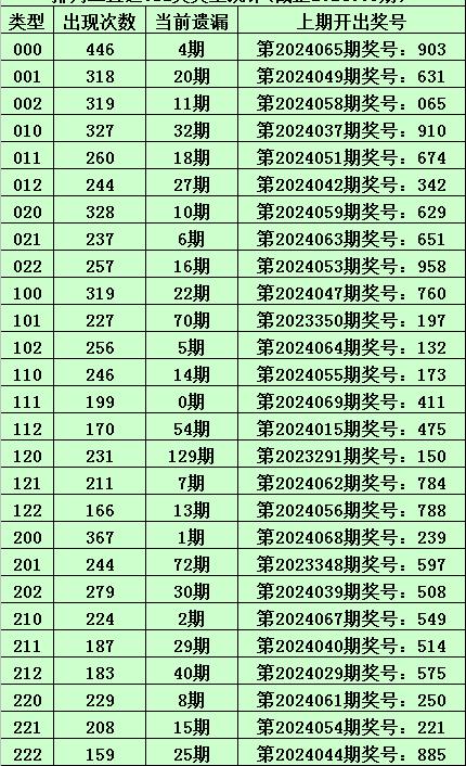 在以上统计中奖,直选111组合之后,下期奖号百位开出号码:1234579,未开出号码068,其中百位号码012路比为5:3:2,大小比为4:6,奇偶比为8:2,本期预计百位出现小号,精选一码1。