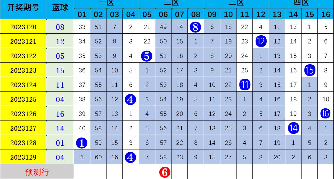 蓝球分析:上期开出号码04,较上期上升3个点开出,近10期蓝球开出5次小号0805040104,5次大号1215111614,大小比5:5,近十期大小号表现较均。本期预测蓝球2区偶数号码出现,蓝球重点关注偶数号码06。