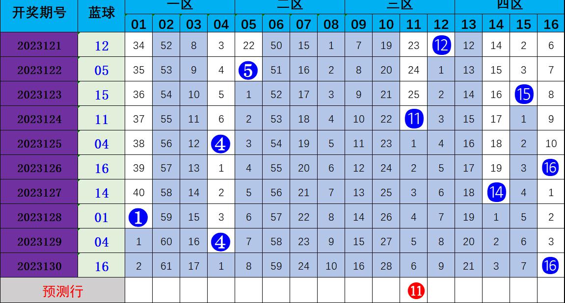 蓝球分析:上期开出蓝球号码16,偶数,十期内出现偶数6次,奇数4次。奇偶比4:6,十期内蓝球偶数出号较热。本期预测3区蓝球奇数开出,参考蓝球奇数号码11。