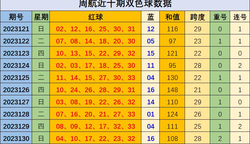 双色球第2023130期开奖,本期红球041017222332,蓝球16。和值108,跨度28,重号1732,连号2223。