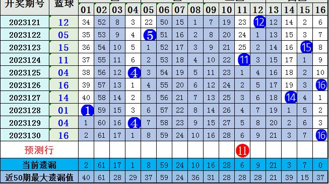 上期开出蓝球号码16,较上期上升2个点位。近十期蓝球号码大号开出6期,小号开出4期,大号走势较热;近十期蓝球号码奇号开出4期,偶号开出6,偶号数量表现较热。本期看好号码0711141516,优先考虑蓝球11。