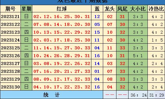 双色球23131期 推荐大小比4:2,蓝球参考11。