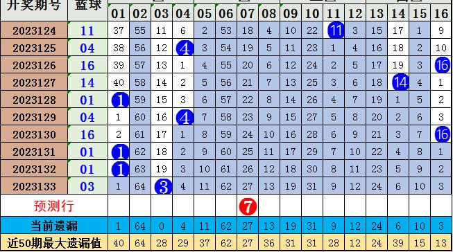 最近10期开出0路奖号1个,1路奖号8个,2路奖号1个,综合看1路走势较热。蓝球重点关注:0304071416,本期推荐:07.
