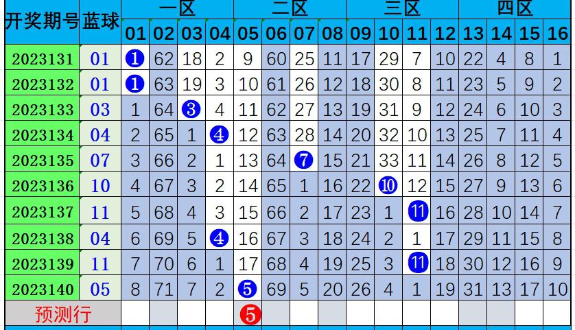 蓝球分析:上期开出小奇数蓝球05,近10期有7期开出奇数蓝球,奇号走势较热,近10期蓝球大小比为3:7,小号蓝球数量较多;本期预测小奇数蓝球开出概率较大,重点推荐号码05。