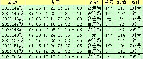 1.红球连号分析:今年连号每期都开出了,表现非常活跃;最近10期连号开出9期;最近100期连号开出75期;本期排除连码组合。