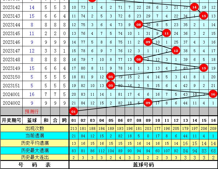 蓝球分析【一区01-04,二区05-08,三区09-12,四区13-16】:上期蓝球为09,出现在第三区,近50期区间比为12:10:14:14,近10期区间比为0:4:4:2,本期关注第一区蓝球号码,参考蓝球01。