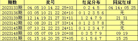 第一二位红尾分析:最近7周星期二红球第一二位尾数分别开出:45、35、24、28、70、35、15,同尾号开出较多;在最近7周星期二尾数分布中,尾数6、9轮空,尾数0出现1个,2、3、5、8出现2个,4出现3个,上周星期二开出尾数组合1-5为奇偶组合,本周星期二继续看好奇偶尾数平衡出现,关注尾数组合1-6。