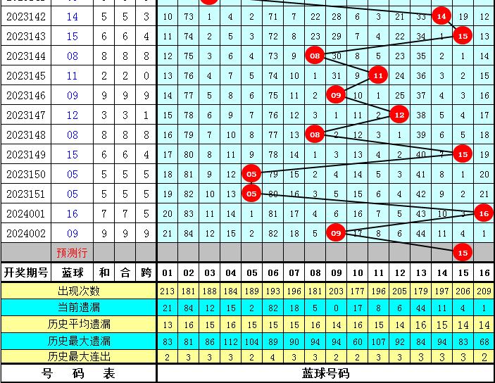 蓝球分析:上期开出蓝球号码09,该号码在前10期蓝球中出现了1次,表现比较活跃,本期可以继续关注最近10期已开出的蓝球号码,参考号码15。